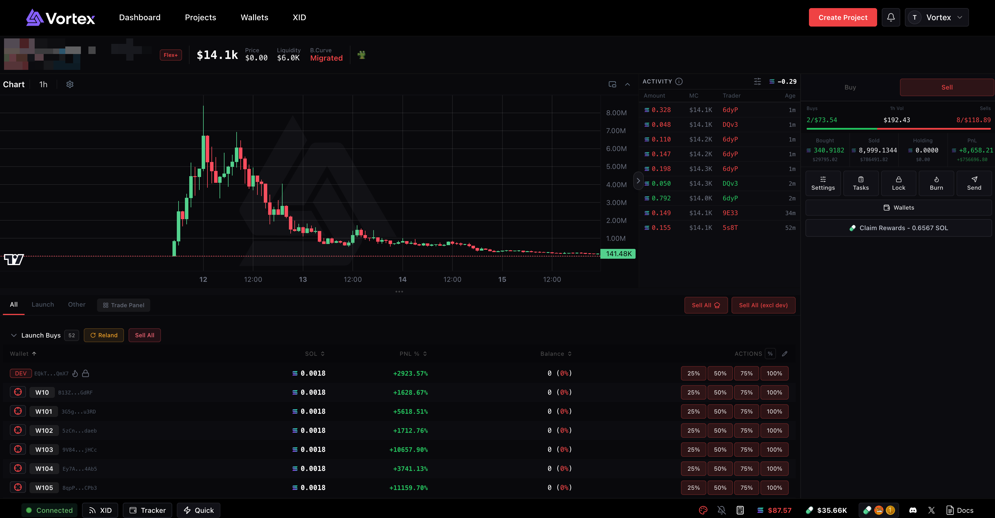 Fund your wallets, configure your launch, and start deploying. Join thousands of devs already using Vortex.